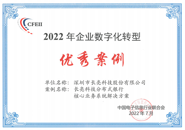 長亮科技多個解決方案入選2022年第一批數(shù)字化轉(zhuǎn)型百項優(yōu)秀案例