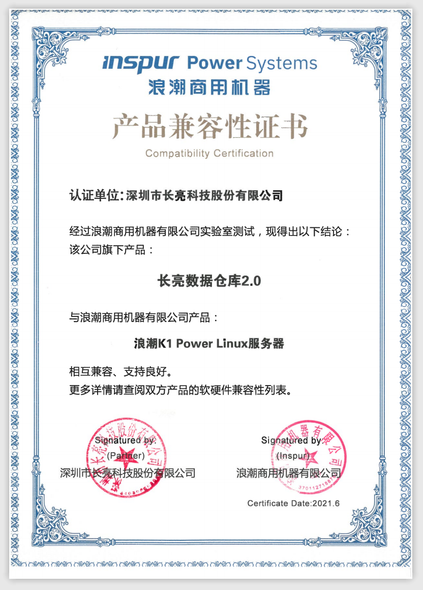 此次聯合認證,充分驗證了長亮科技數據倉庫解決方案與浪潮公司的硬件服務器的兼容性與優異性,為后續雙方面向大數據領域的深度合作奠定了建設基礎,同時也將進一步助推創新型應用落地,加速金融業數字化轉型發展。